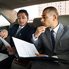 電車ではできない電話でのやり取りや、資料を広げた書類作成、複数人での対面式ミーティングなど、密室かつ広い車内スペースでなければ実現できないビジネスユースでのご活用も、「空港送迎.com」にお任せください。